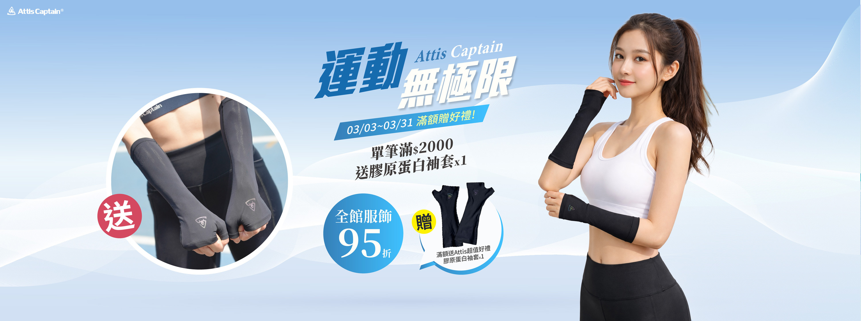 03/03~03/31全館95折滿2000送膠原蛋白袖套(短款*1)