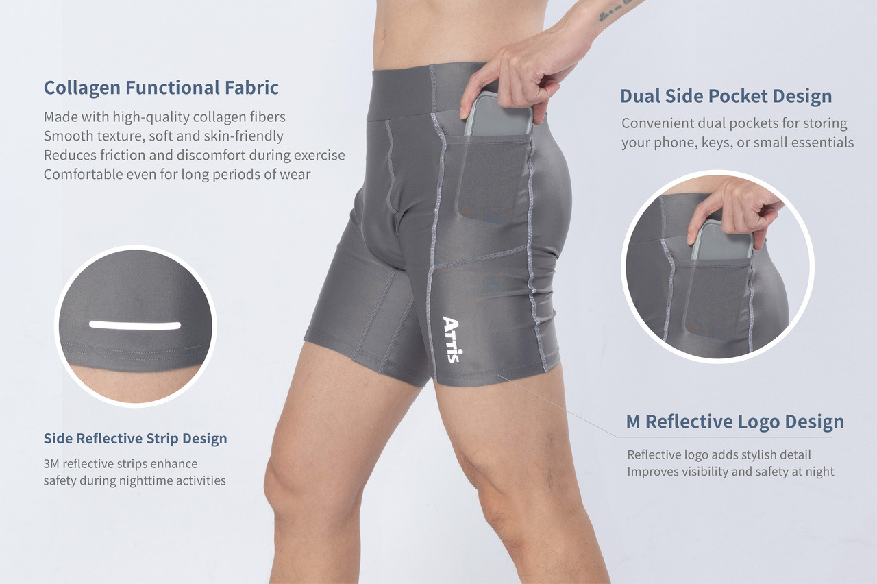 •Four reflective stripes enhance visibility for safer nighttime workouts